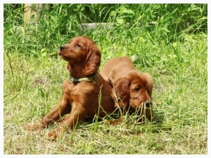 Ich selbst versuche den Spagat, einen schönen, sprich mit vorzüglich bewerteten Irish Setter zu züchten, der sich auch als Arbeitshund eignet. In der Regel bekommen die Hunde aus dem Irish Setter Zwinger Lord‘s Shelter den besten Formwert mit vorzüglich(v). Mit einem Formwert sehr gut kann ein Irish Setter zur Zucht zugelassen werden. Im Vergleich zum Formwert vorzüglich hat der Irish Setter mit dem Formwert sehr gut (sg) kleine Abzüge in Fellfarbe, Skelettaufbau oder Augenfarbe. Die Unterschiede der entsprechend kategorisierten Irish Setter sind für Laien allerdings nur schwer erkennbar. Auf Irish Setter Prüfungen und Irish Setter Show-Ausstellungen liegen die Irish Setter von Lord‘s Shelter im oberen Mittelfeld. Schönheitstitel wie Deutscher Schönheitschampion VDH hat Lord‘s Shelter Cyrill erreicht. Mit Sicherheit sind alle pfiffig genug, als Jagdhunde zu arbeiten. Dem klassisch in Deutschland geführten Jagdhund Deutsch Drahthaar begegnen unsere Irish Setter durchaus als gleichwertige Konkurrenten. Alle Irish Setter eigenen sich als Liebhaberhunde, sprich als Familienhund. Unsere Irish Setter sind sehr freundlich, gelassen und sportlich.